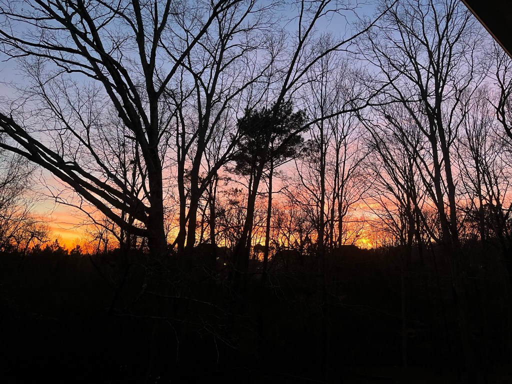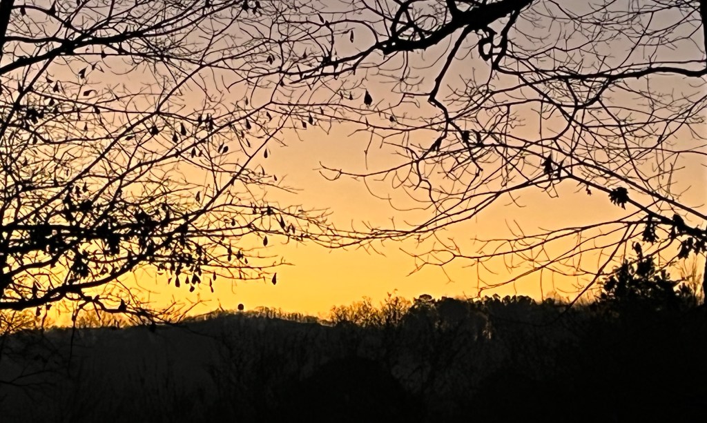 Being no meteorologist or astronomer I must take the word of such folks that December 21 in the longest night each year. The long dark days this time of year can certainly challenge many of us emotionally and physically. I’ve had many long nights sleeping in the recliner thanks to unwillingly dwelling in the “pain pit” this month. I was overwhelmed though this morning when the Lord woke me with butter colored light filling our little sunroom. Moving out to the deck to catch the above glory reminded me of that beautiful verse, “Joy comes in the morning.” What a Blessing!